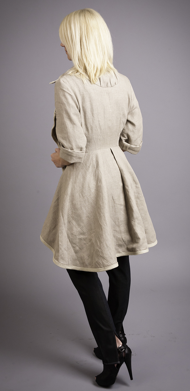 It was quite the experience, because at the end of the second semester, we had to present our collection to real industry buyers! We were paired with a merchandising major and were required to develop an entire buyers kit; complete with a take aways, press release, line sheets, business cards, look book, etc. It was a really amazing opportunity and when it was all said and done I was offered, by a local boutique owner, to have my trench produced and sold in his store!